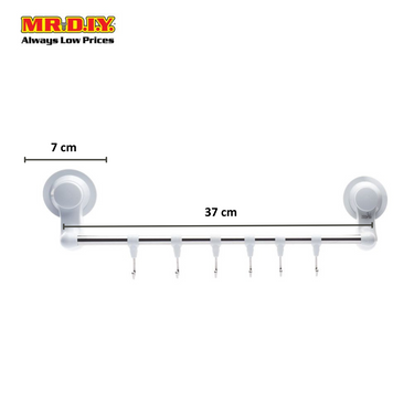 Packaging Included: 1x Unit of (MR.DIY) Strong Vacuum Suction Cup Wall Mounted Toilet Bathroom Towel Bar With Hooks(37cm)