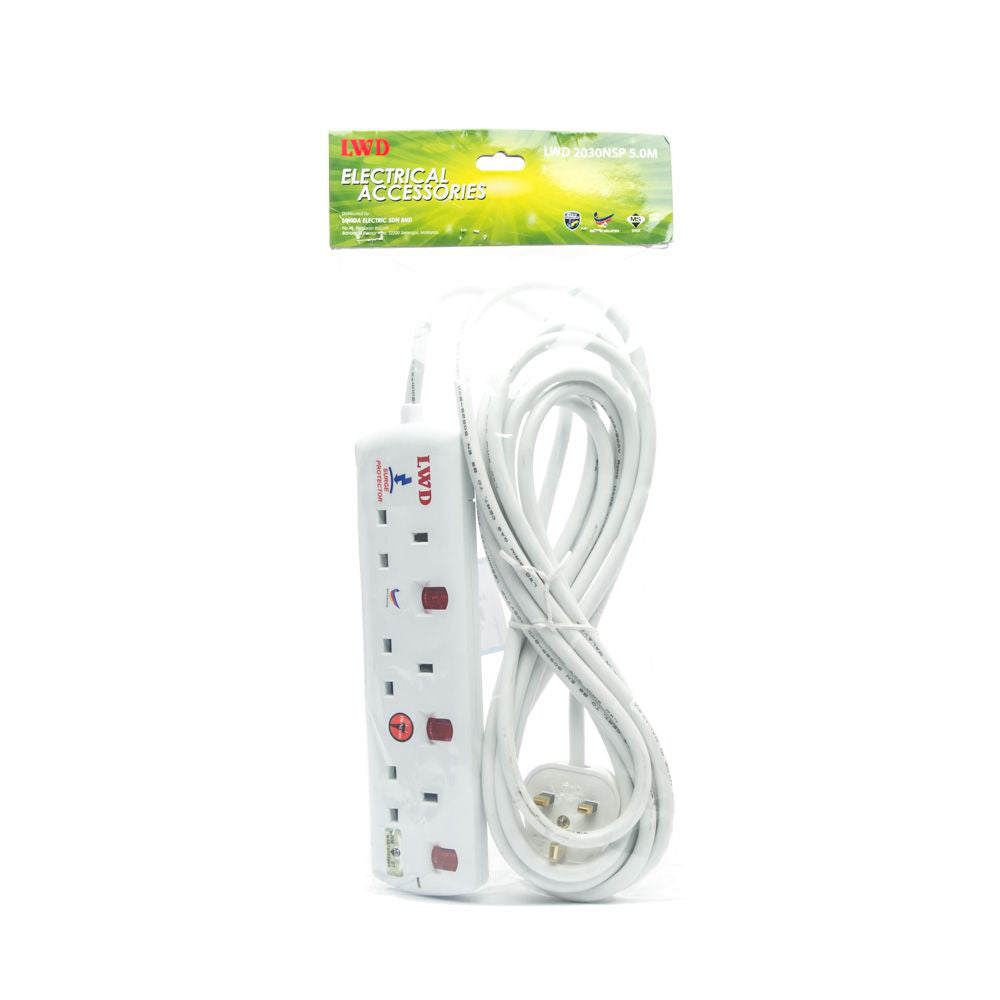 • Package Includes: 1x LWD 3-Gang Way Extension Trailing Socket
