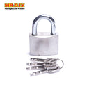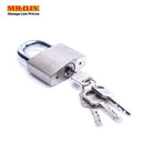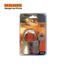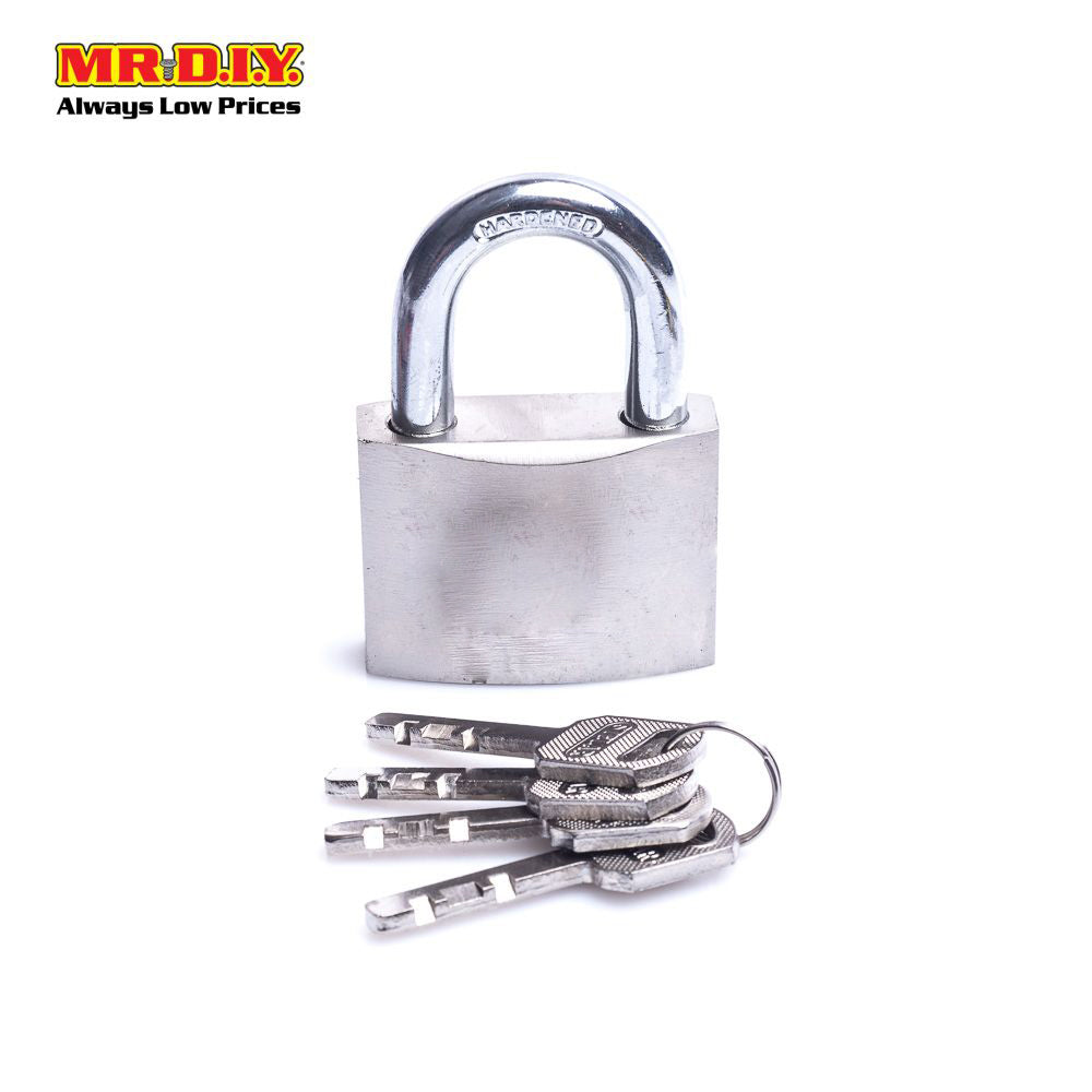 Hardened steel shackle is resistant to hammer blows, sawing & water/weather