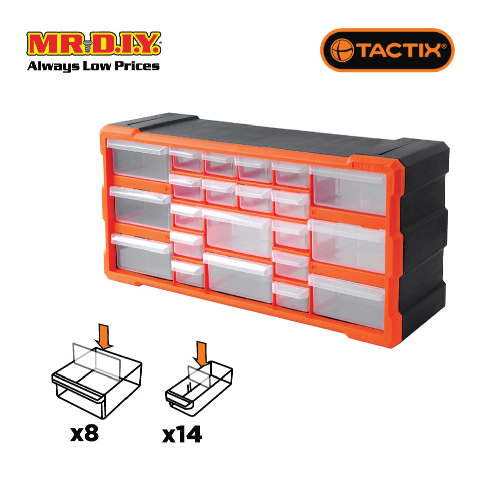 Durable Construction: The TACTIX 22-Drawers Storage Bin is built with durable materials to withstand regular use and provide long-lasting durability. It is designed to withstand the demands of storing and organizing small parts effectively.