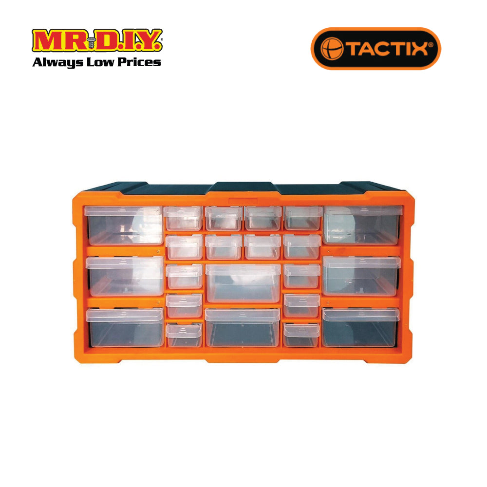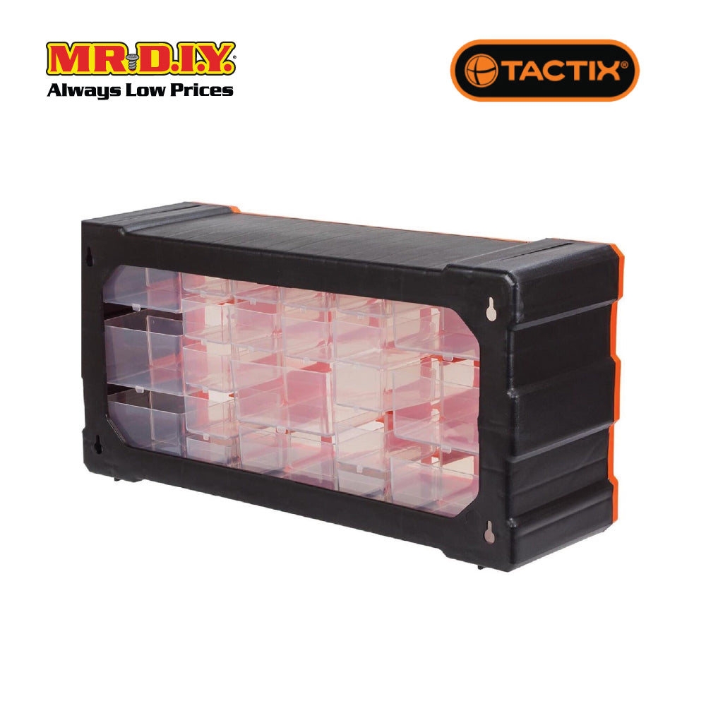 TACTIX 22-Drawers Storage Bin, a compact and versatile storage solution designed to keep your small parts organized and easily accessible. With its thoughtful design and transparent drawers, this storage bin is perfect for a wide range of applications. Here are the key features of the TACTIX 22-Drawers Storage Bin: