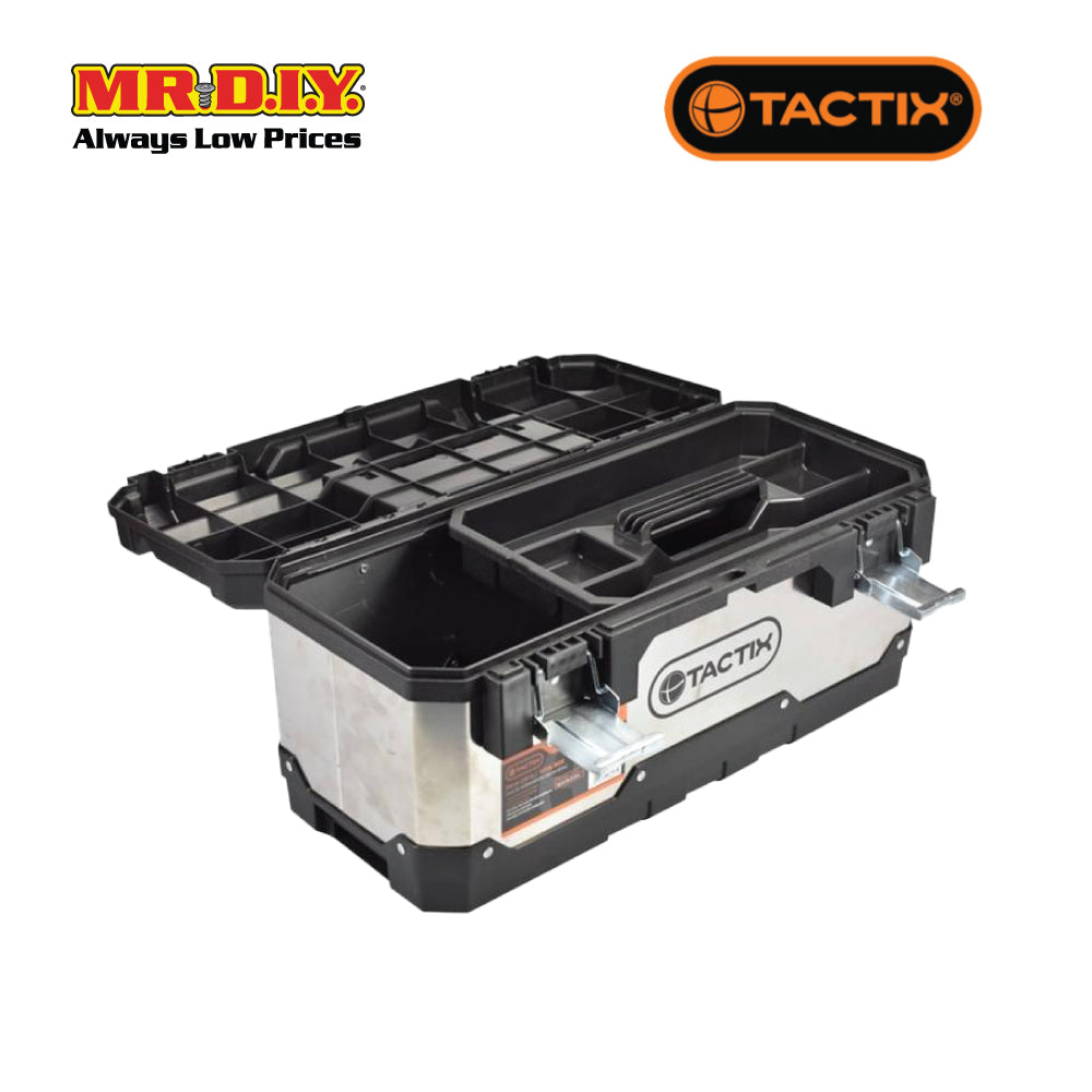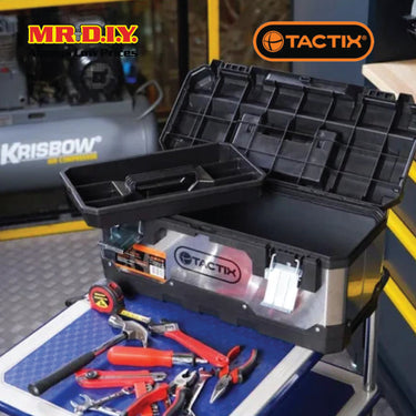 Package Included: 1 unit of TACTIX Plastic And Stainless Steel Tool Box 50Cm (20Inch)