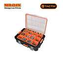 TACTIX Top Organizer, a versatile and customizable storage solution designed to help you keep your small parts and accessories organized. This top organizer features a size of 52.8 W x 36.8 D x 12.9 H cm and is equipped with 8 small bins and 2 large bins, all with dividers, allowing you to create customized compartments based on your specific storage needs. Here are the key features of the TACTIX Top Organizer:
