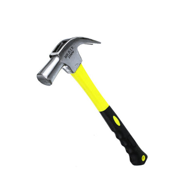 The hammer features a claw with a curved design that allows for easy nail extraction. The hardened and heat-treated curved claws are designed for effective nail removal, making it versatile for various carpentry and construction tasks