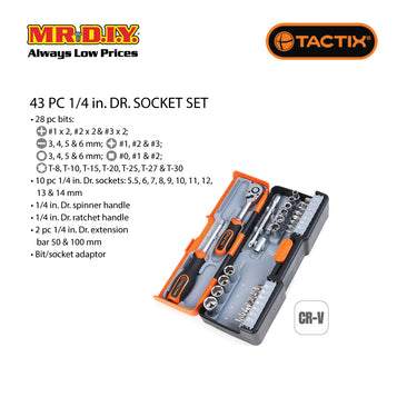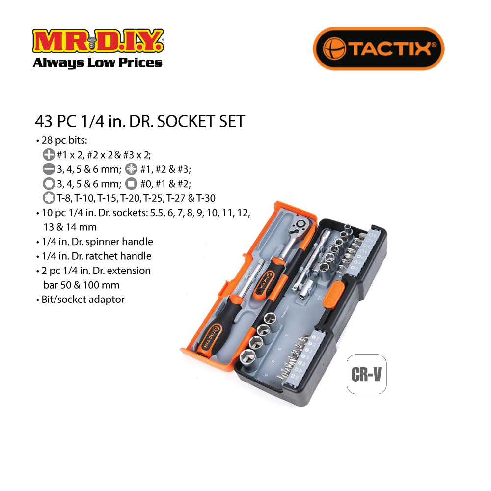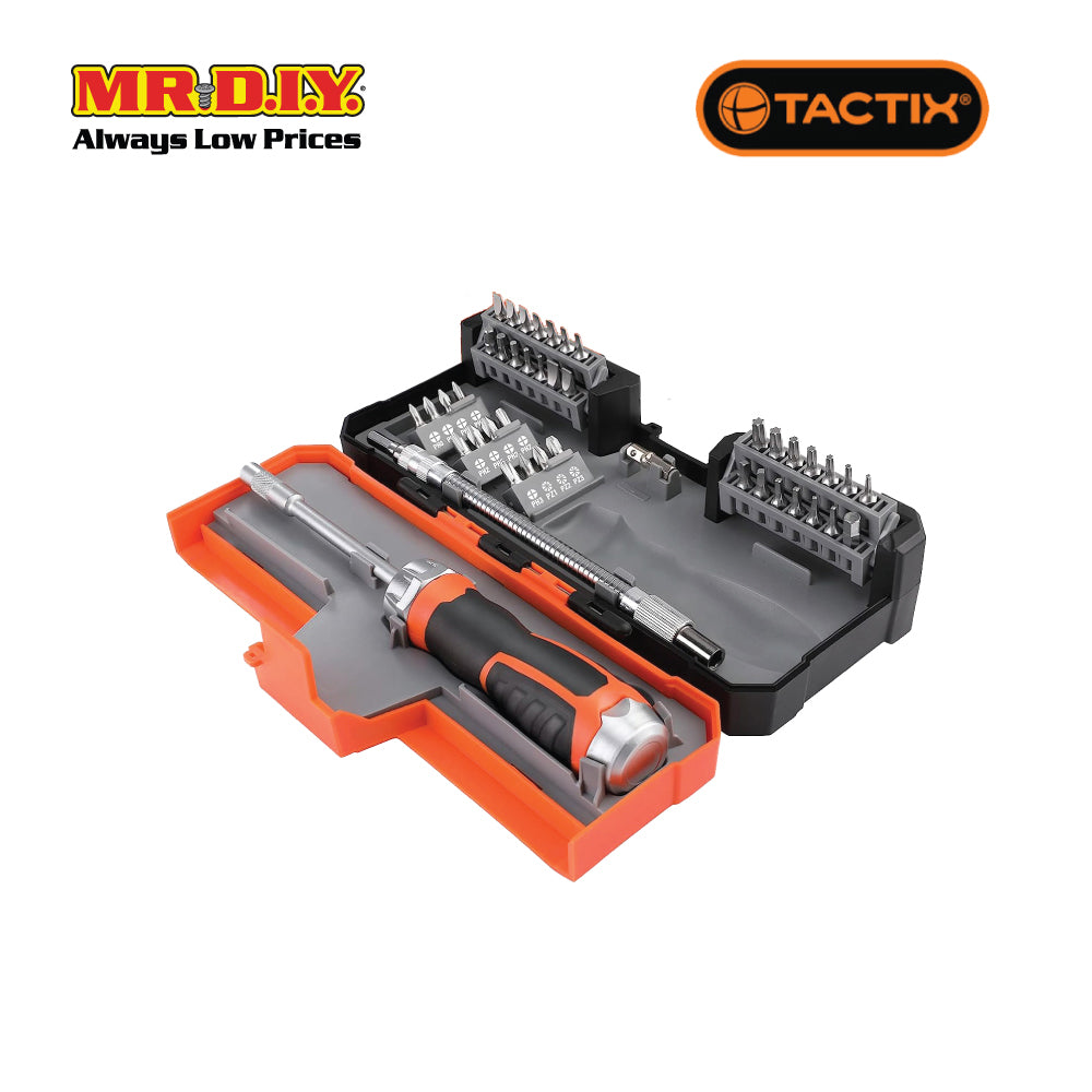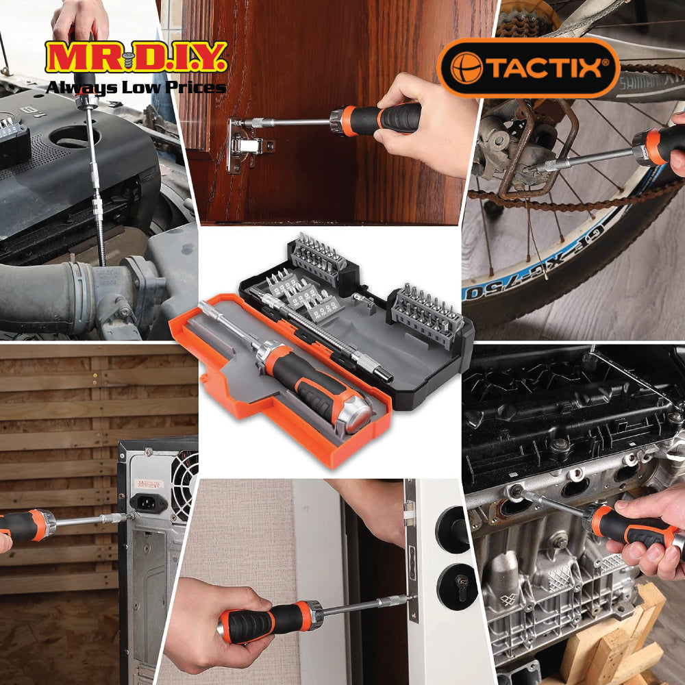 TACTIX Ratchet Driver & Bits Set includes a range of tools for various fastening and driving tasks. Here are the components of the set: