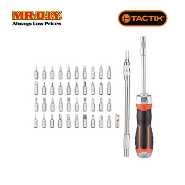 The TACTIX Ratchet Driver & Bits Set provides a comprehensive selection of tools for various fastening and driving tasks. It is suitable for both professional and DIY use.