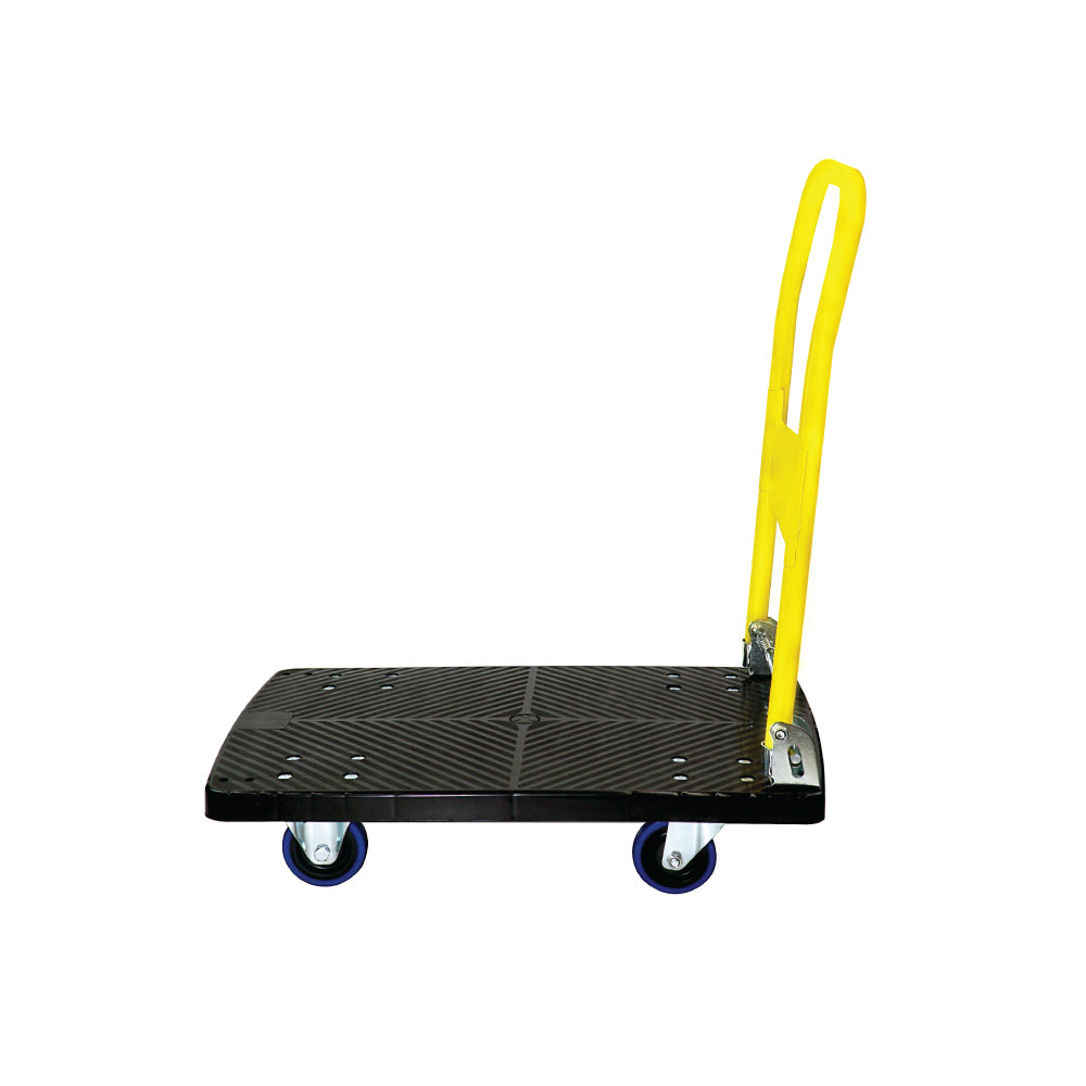 Constructed with a corrosion-resistant PVC platform that features non-slip markings, ensuring stability and safety while transporting goods.