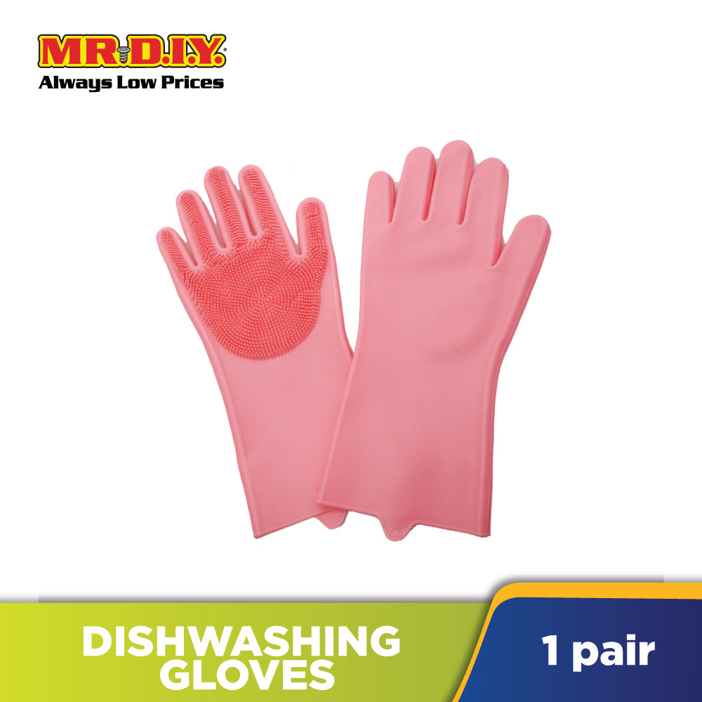 The (MR.DIY) Silicone Dishwashing Rubber Gloves are a type of cleaning glove made from silicone material, designed for washing dishes. Unlike traditional rubber gloves, these silicone gloves are durable, flexible, and often feature scrubbing bristles on the palms and fingers to help clean dishes more effectively. They are also typically heat-resistant and easy to clean, making them a versatile tool for kitchen tasks.