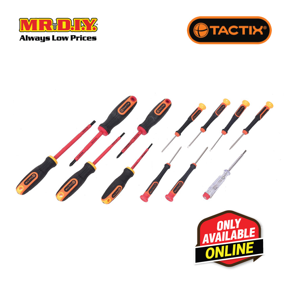 The TACTIX Insulated Screwdriver Set (12 pieces) is a comprehensive set of screwdrivers designed for various applications, including electrical work and precision tasks. Here's what you get in this set: