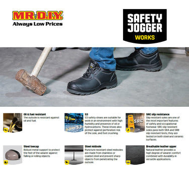 Tackle tough work environments with confidence using SAFETY JOGGER BESTRUN S3 Safety Shoes. Designed for demanding industries, these low-cut safety shoes feature a breathable leather upper for lasting comfort and durability. Equipped with a steel toe cap and puncture-resistant midsole, they provide reliable protection against impact and sharp objects. With S3-rated resistance to oil, fuel, water, and slipping, they are ideal for automotive, mining, and oil & gas work. The ergonomic design also supports better posture and reduces body fatigue, all at an affordable price.