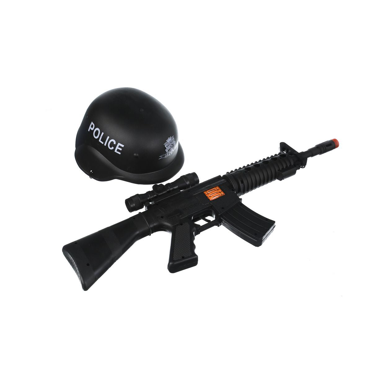 The police playset features a toy gun with a trigger that activates realistic sounds, allowing your child to immerse themselves in their very own police adventures.