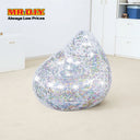 When fully inflated, the chair measures 72 cm x 72 cm x 64 cm, making it a compact and comfortable seating option. Its standout feature is the shimmering glitter-filled design, creating a sparkling effect that enhances the aesthetics of any space.