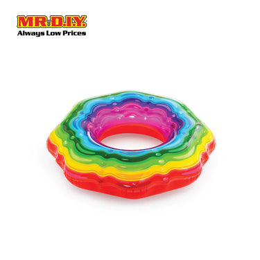 The BESTWAY Rainbow Swim Ring boasts a stunning rainbow color design that adds a pop of vibrancy to your poolside activities. Its eye-catching appearance makes it a standout accessory in any aquatic setting.