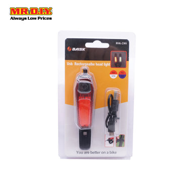 The BAISK USB Rechargable Bicycle Front Head Light - BSK-2301 is an essential accessory for cyclists, designed to enhance visibility and safety during nighttime rides.