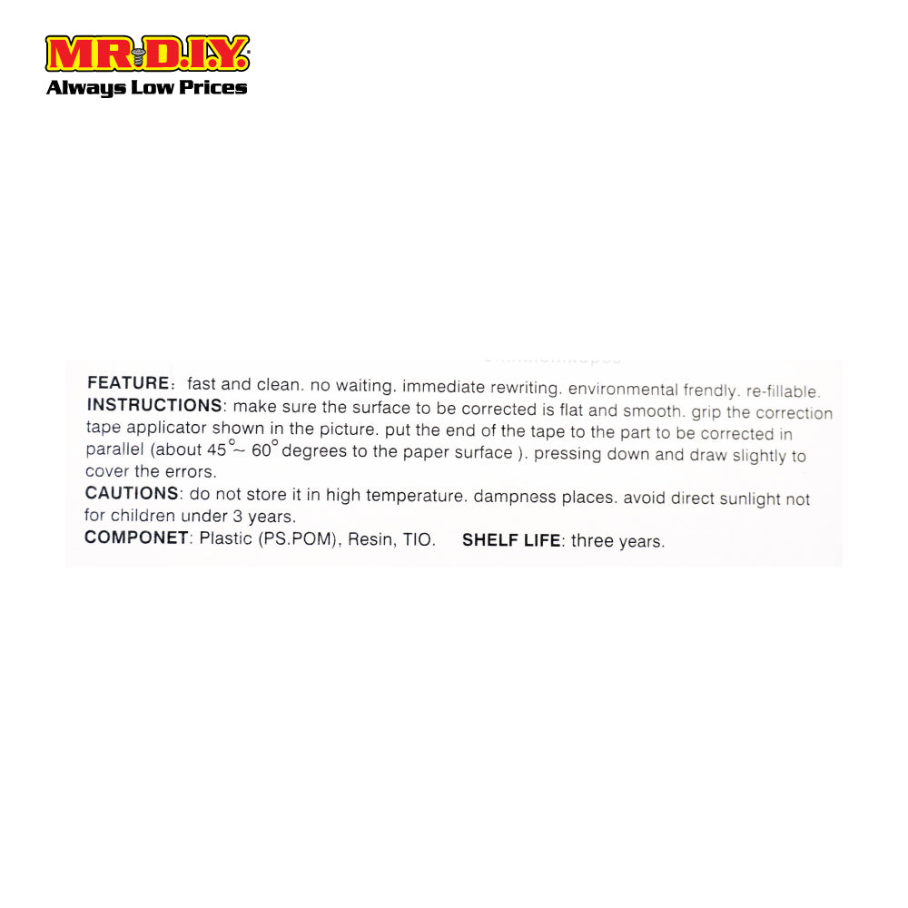 The (MR.DIY) Affordable Jumbo Correction Tape - MR4965 Set is a practical and eco-friendly solution for correcting written mistakes. Perfect for school, office, or home use, this set provides an efficient, neat, and refillable correction experience.
