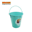 A Frozen metal pail is a cylindrical container made of metal and is commonly used for storing and transporting liquids or solid materials. has a handle for easy carrying and a lid for secure storage.