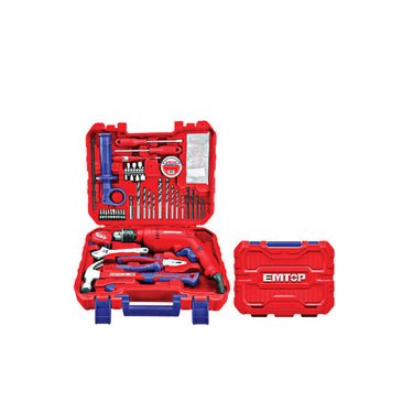 The EMTOP 122-Piece Tools Set is a comprehensive toolkit that equips you with the essential tools you need to tackle a wide range of tasks. From drilling and driving to measuring and fastening, this set has you covered. Whether you're a DIY enthusiast or a professional tradesperson, this toolkit offers convenience, versatility, and reliability for all your projects.
