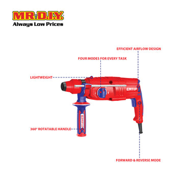 Durable and Reliable: Built with durability in mind, the EMTOP Rotary Hammer is designed to withstand heavy-duty use and deliver consistent results over time.