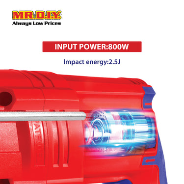 Voltage and Power: The EMTOP Rotary Hammer operates on a voltage of 220-240V~50/60Hz (BS plug) and boasts an input power of 800W. This ensures that you have ample power to tackle a variety of drilling tasks with ease.