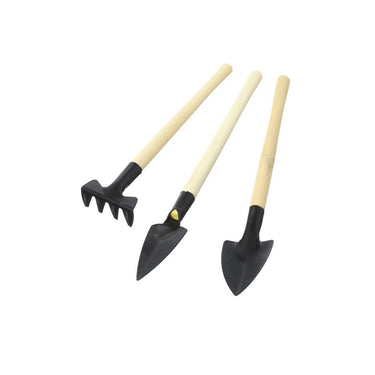 Set includes: 1 rake, 1 triangle shovel and 1 spade showel.