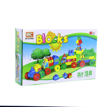 HC Train Educational Block toys in this box, there are blocks of different shapes and colors containing 58 pcs, high-size blocks between 1.5 to 4.5 cm which can be assembled, into various kinds of cars or trains that can train the motor coordination of children, also help develop logic , creativity and imagination of children by compiling them. In the box there is a paper instructions, so that children can learn and seek ideas from there.