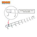 10 Cangkuk Kukuh – Dilengkapi 10 cangkuk berjarak sekata untuk menggantung pakaian, tuala, topi atau beg.
