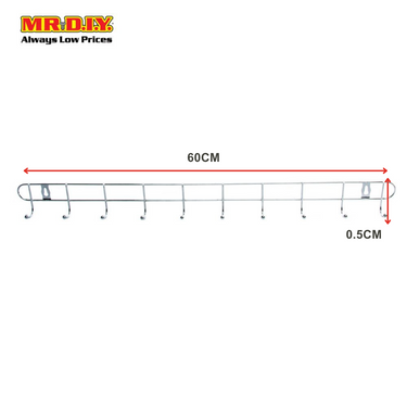 (MR.DIY) Clothes Towel Metal Door Hooks Organizer Hanger Wall-Mounted (60 x 0.5cm) – Durable & Space-Saving Storage Solution!