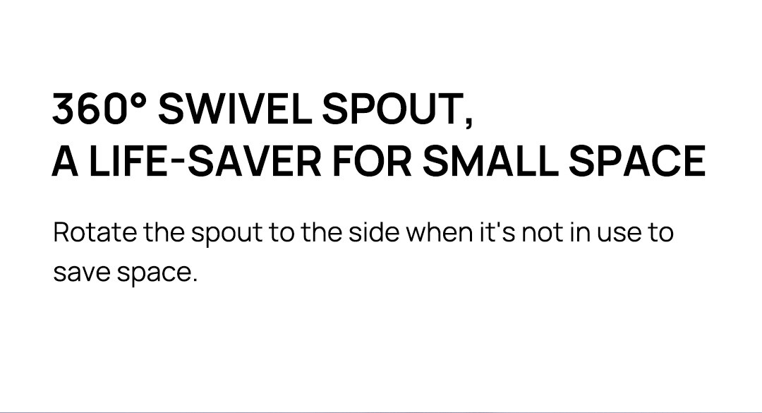 360° Swivel Spout – Full rotation allows maximum convenience for rinsing and cleaning around the basin.