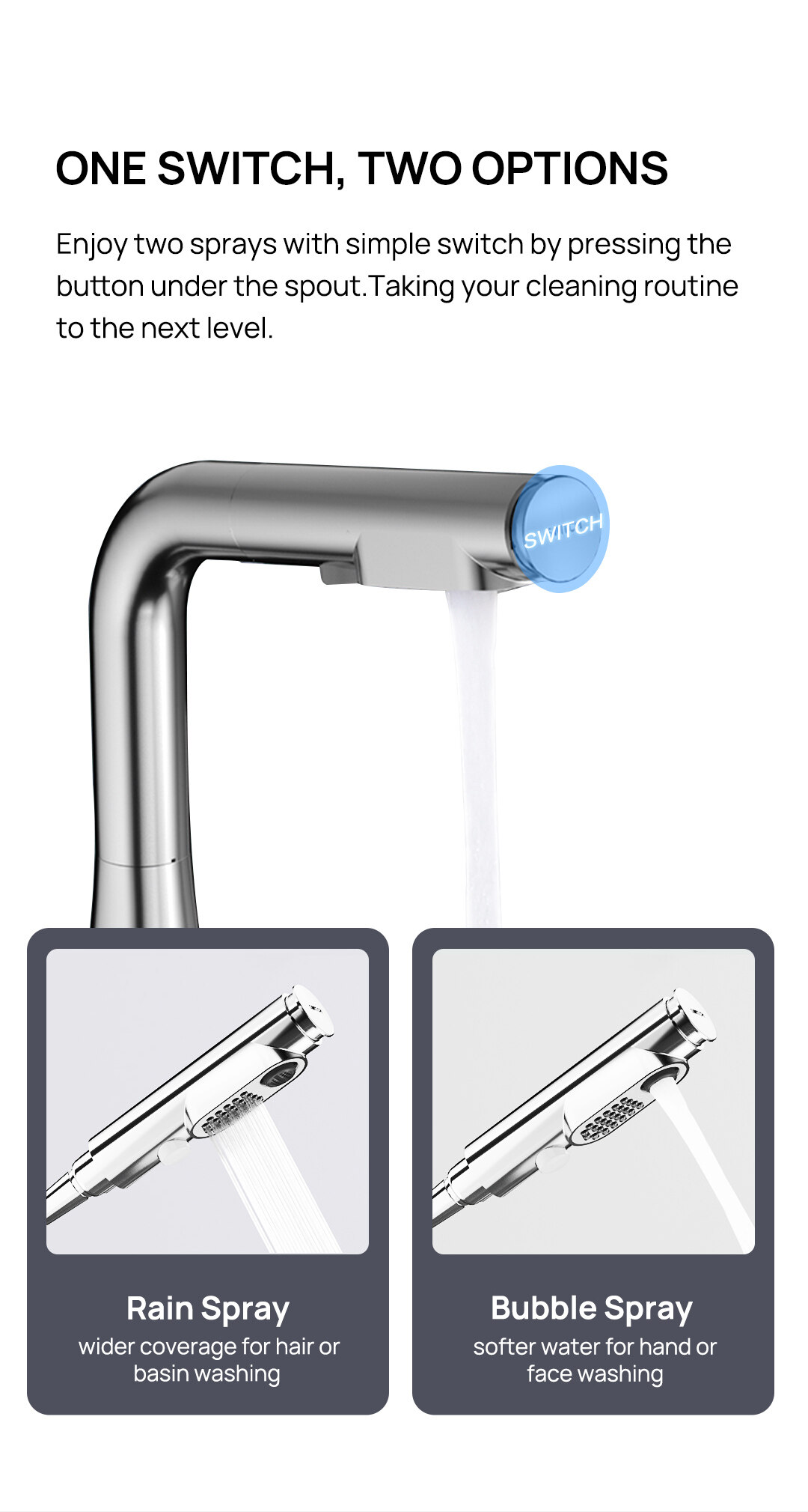 Dual Spray Modes – Switch easily between bubble water and silk rain for versatile usage.