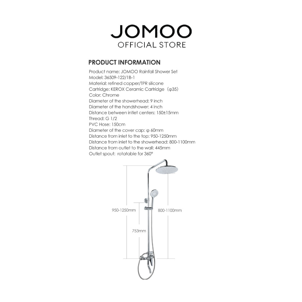 JOMOO Bathroom Rain Shower Set (36509-122/1B-1) – Timeless Design, Reliable Performance