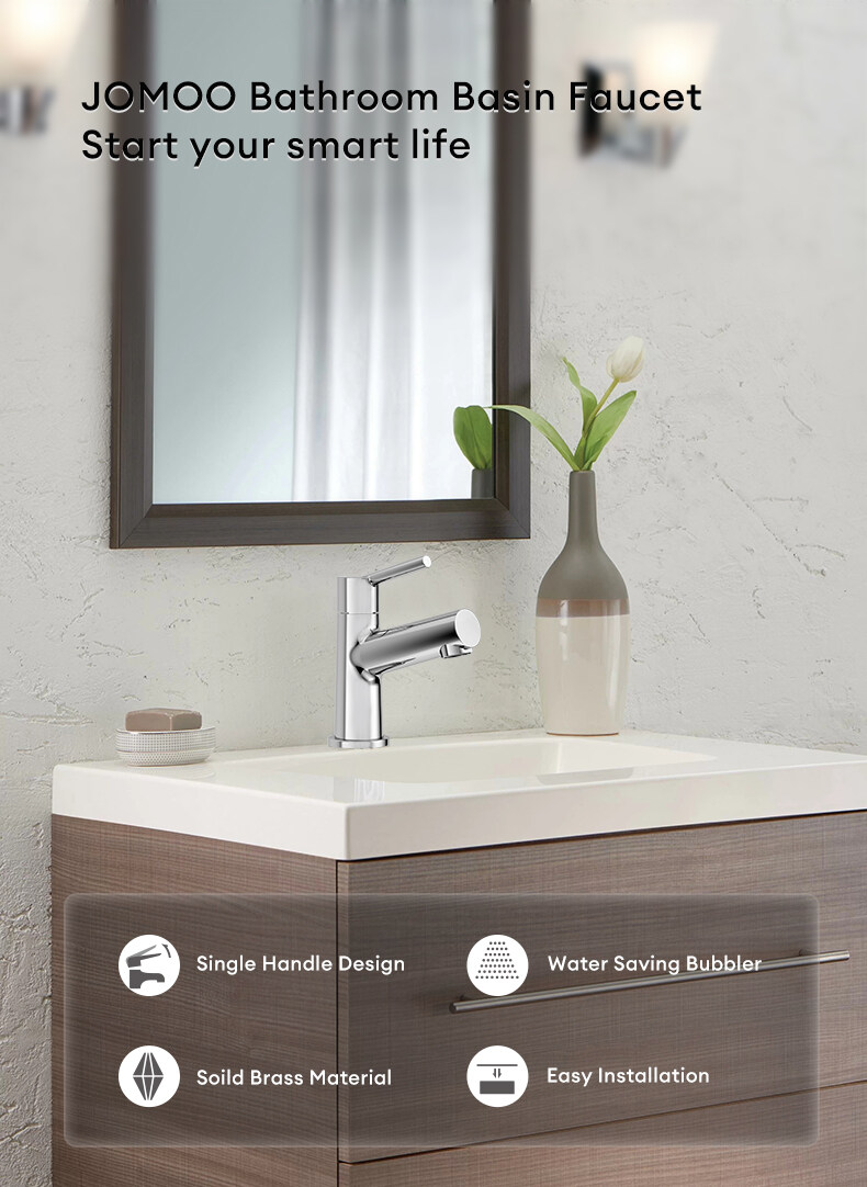 JOMOO Single Cold Basin Water Tap – Durable Brass Build with Smooth Chrome Finish!