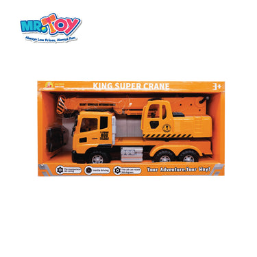 The crane truck features a moveable ladder, swinging manipulator, and accessories that stimulate children's imaginations and mimic real-life construction vehicles.