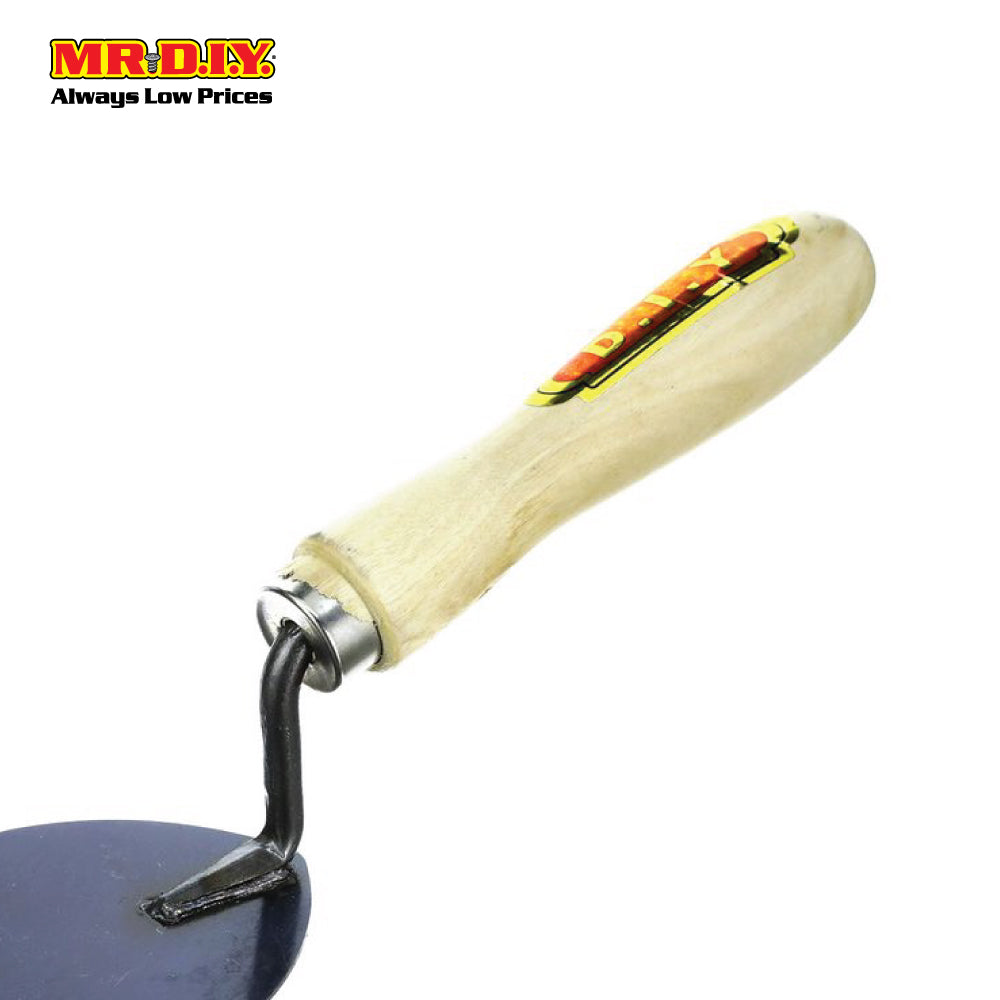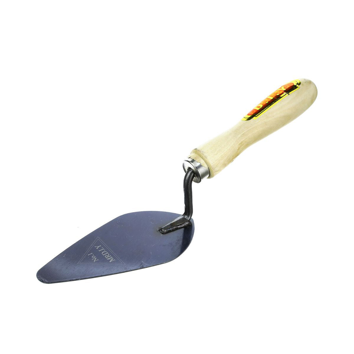 Rounded heel shapes the blade so that the mortar is carried a little further forward on the blade.