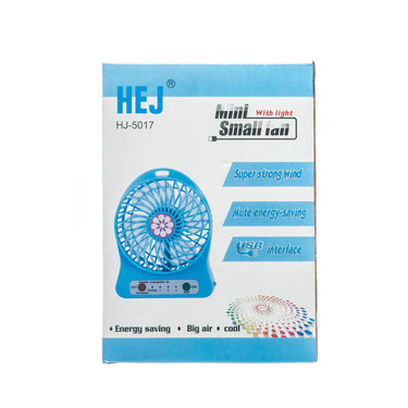 Looking for a small table fan to fit on your small table? You can get this HEJ MINI FAN WITH LIGHT HJ-5017. This portable multifunctional USB comes with a rechargeable battery which provides strong cooling air. It has a USB interface and comes an energy-saving mode. This mini fan definitely helps to save a lot of sapce when it comes to small area. Add this Mini Small Fan to the cart today.