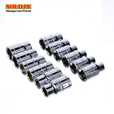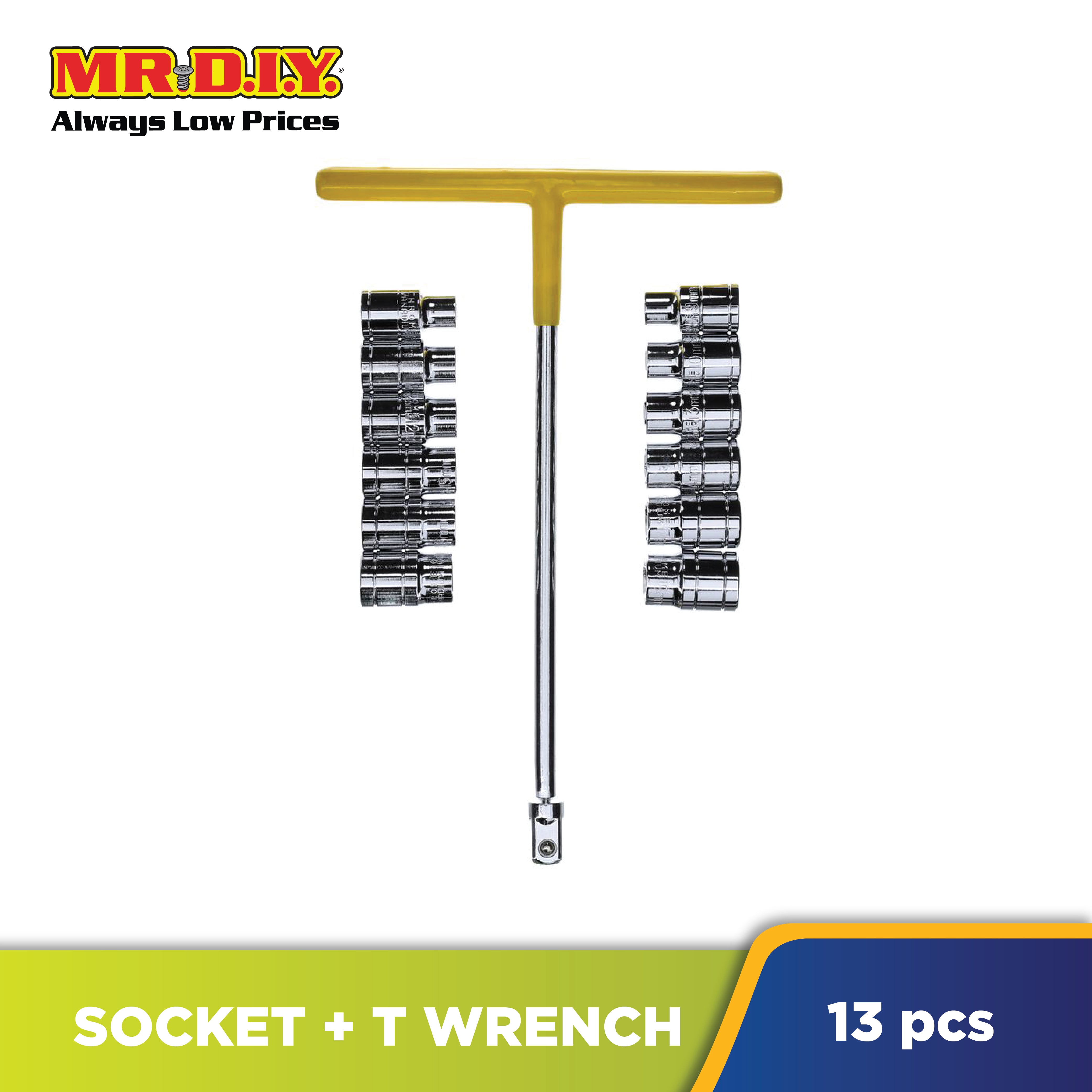Complete your hardware tools collection with MR DIY Socket +T Wrench 88813 (13 pcs). It comes in different sizes – 8, 9, 10, 11, 12, 13, 14, 15, 16, 17, 18, and 19 mm for more flexibility. This wrench set is made of precision solid forged with chrome vanadium steel to protect it from corrosion. Besides that, the design of special internal angle of curve increases torque by 30% and effectively reduce the wear of nuts pointed. Therefore, there's no slippery in operation and it's safe to be used. This firm and durable wrench set is suitable to be used for industrial and automotive work. Get yours now!