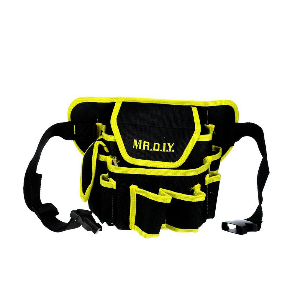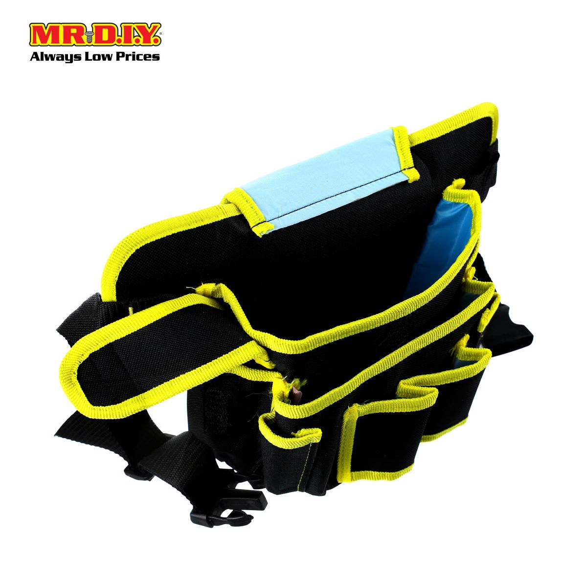 This waist tool bag features our unique ventilated padding to help you sweat less and with our memory foam padding it makes it breathe better and give you the most comfortable belt. The carry handles for easy transport and putting the belt on and taking it off. Plus this waist tool bag has each pouch was engineered to carry the tools of a professional electrician. And you don't need to worry about toughness because these waist tool bag are guaranteed tough with the reinforced box design with an inner hard plastic lining as well as rivets and bar-tacking at every stress point on the belt.