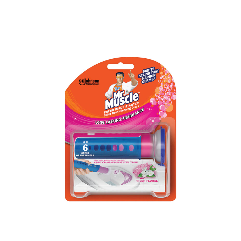 Effortless Cleaning: The MR MUSCLE Fresh Disc Starter provides an effortless way to keep your toilet bowl clean and fresh. Simply place the disc in the bowl, and it will work its magic to fight stains and odors.