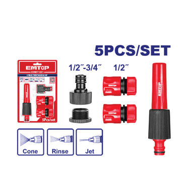 The EMTOP 5 Piece Twist Nozzle Set is a high-quality watering accessory kit designed to provide efficient and versatile watering solutions for your garden or outdoor space. Here are the key components and features of this set: