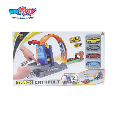 The MR. TOY Race Car Track 360 Degrees is a thrilling racing toy designed to deliver high-speed action for young car lovers. This race car track features an exhilarating 360-degree loop, providing children with an exciting racing experience as they zoom their cars through loops and turns. It's easy to set up, making it an ideal choice for interactive and imaginative play.