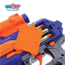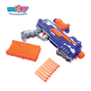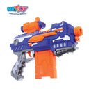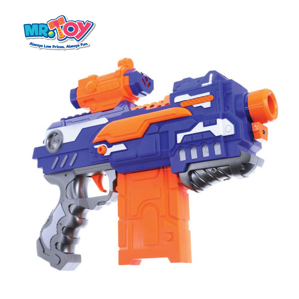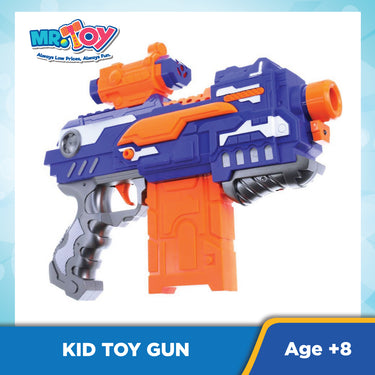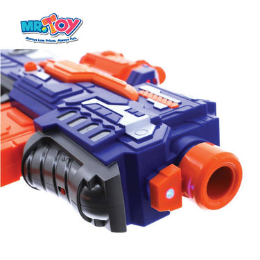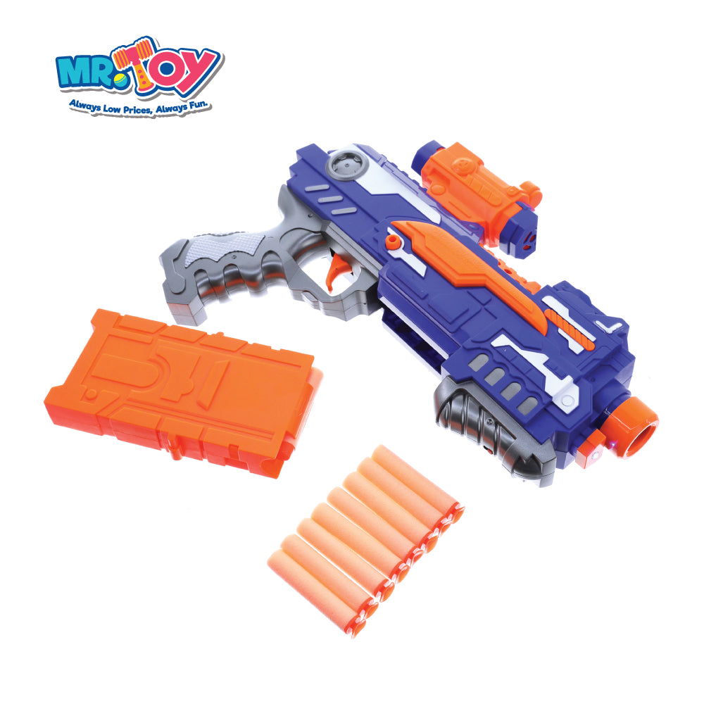Increase the excitement of playing with your friends together with this soft bullet toy gun. This new style design gun shoots attractive and colorful soft foam darts. The soft bullet toy gun has the best shoot board available in the market. Playing with this gun improves high and eye co-ordination , object recognition and sensory development. The soft bullet toy gun has an alignment of target shooting and operates with 3 pcs AA battery (not included). Buy the soft bullet toy gun now and get it with 16 pieces of foam darts.