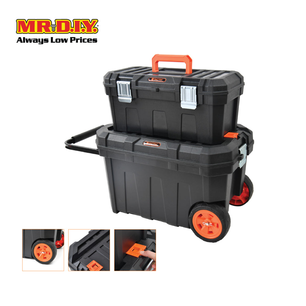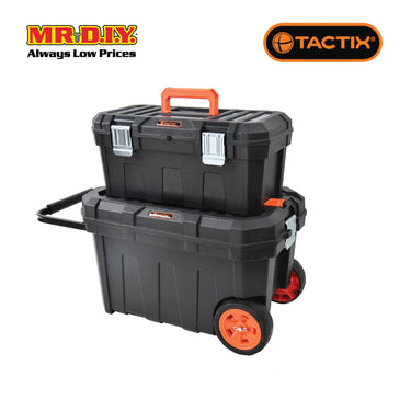 Tactix 2-in-1 Rolling Tool Box Set, a versatile and efficient storage solution for your tools and equipment. This set includes two well-built storage boxes that can be used individually or stacked together, providing convenience and organization for your projects.