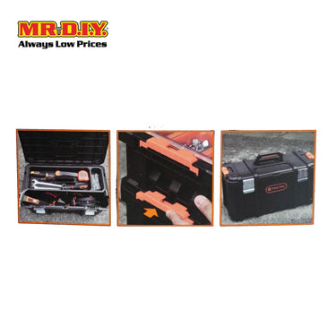 Material: Plastic (Tool Box) + Metal (Lock Buckles) + TPR (Thermoplastic Rubber) wheelsÂ