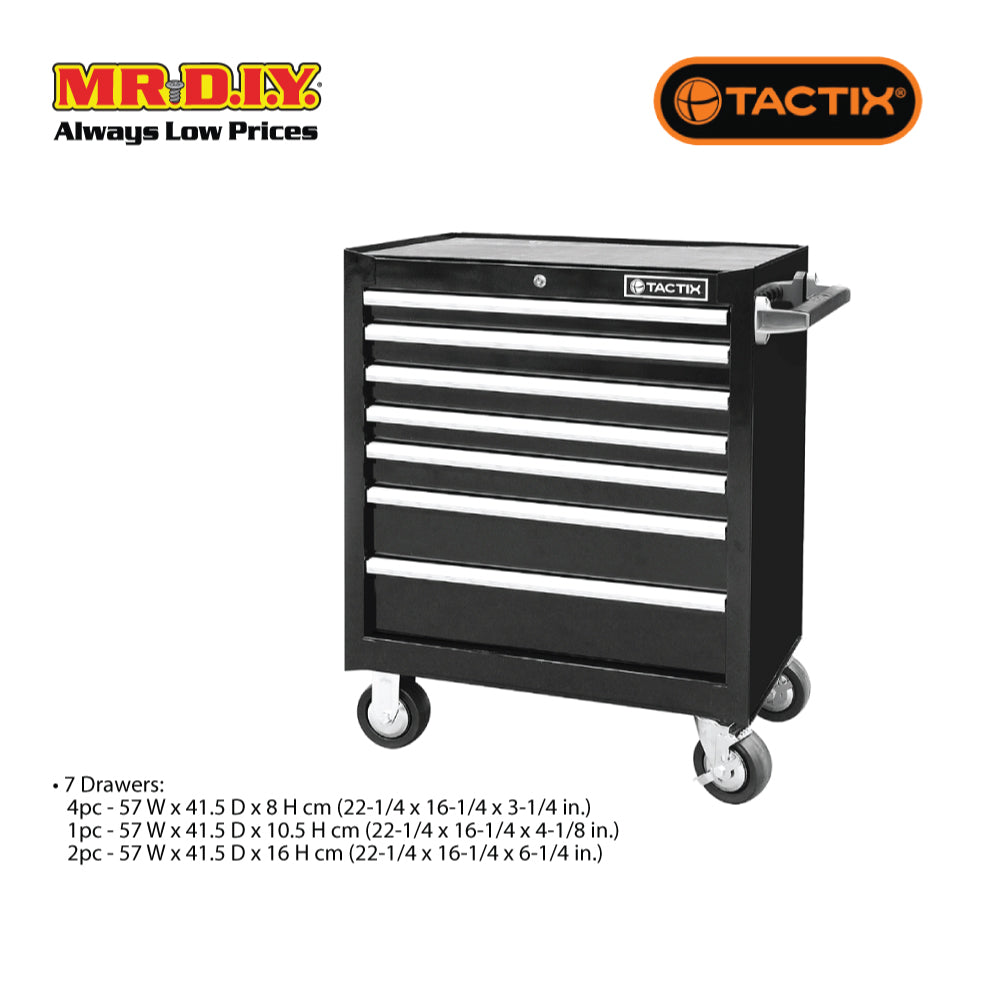 TACTIX 7-Drawers Tool Cabinet, a high-quality storage solution for your tools and equipment. This tool cabinet offers a range of features designed to enhance usability and durability. Here are the key features of the TACTIX 7-Drawers Tool Cabinet: