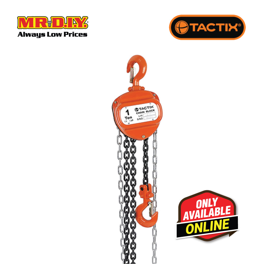 The TACTIX Chain Block (1T x 3m) is an indispensable tool for any workspace or project that involves heavy lifting. It provides reliable and safe lifting capabilities for professionals and DIY enthusiasts alike. Always adhere to the manufacturer's instructions and safety guidelines to ensure proper and safe use of the chain block.