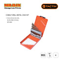 The TACTIX Cobalt Drill Set in a Metal Case consists of 13 pieces of high-quality cobalt drill bits. Here are the key features of this drill set: