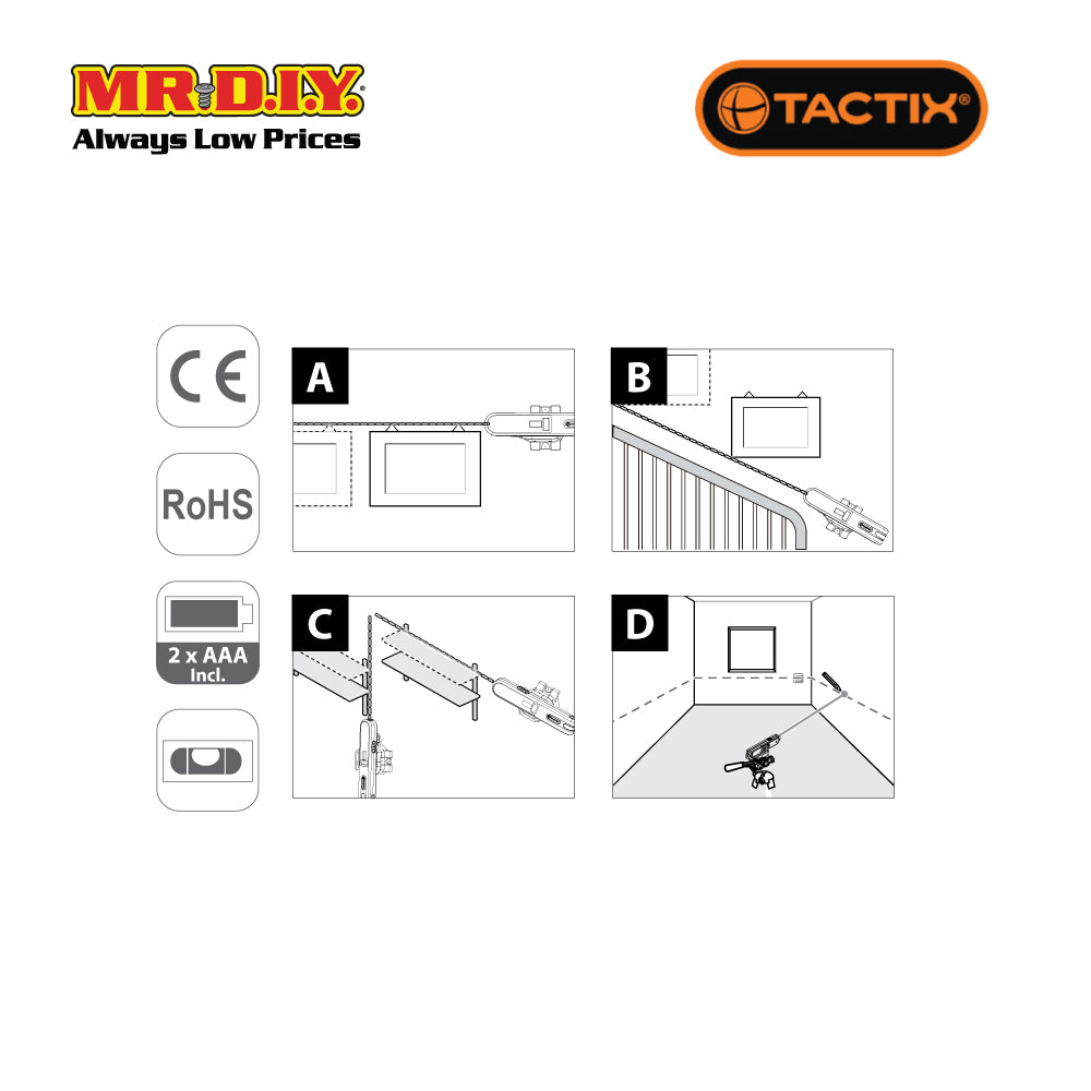 Versatile Applications: The TACTIX Combination Point And Line Laser Level is suitable for various applications, including carpentry, construction, tiling, and other tasks that require accurate leveling and alignment.