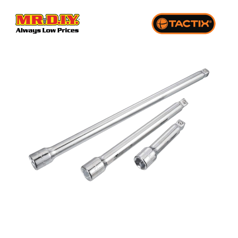 The TACTIX Extension Bar Set (3 pieces x 3/8 Inch) is a versatile toolset that includes three extension bars designed to work with 3/8 inch drive sockets. Here are the key features of this set: