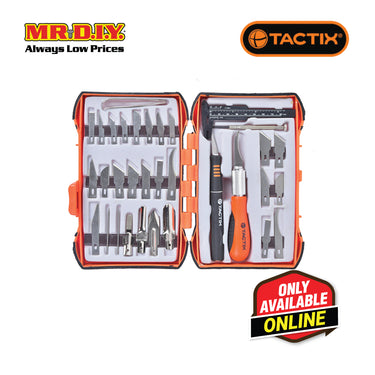 TACTIX Hobby Knife Set (36 Pieces) is a comprehensive and versatile kit designed for various craft and hobby applications. With its extensive selection of blades and additional tools, this set provides you with the necessary tools for precision cutting, measuring, and handling small objects. Here are the key features of the TACTIX Hobby Knife Set: