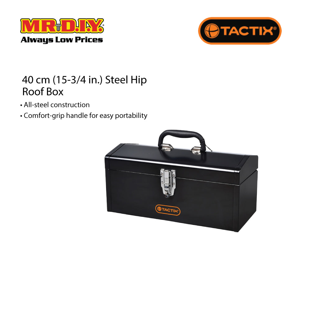 TACTIX Steel Hip Roof Box, a sturdy and portable storage solution for your tools and accessories. With its all-steel construction and convenient features, this hip roof box is designed to provide durability and ease of use. Here are the key features of the TACTIX Steel Hip Roof Box: