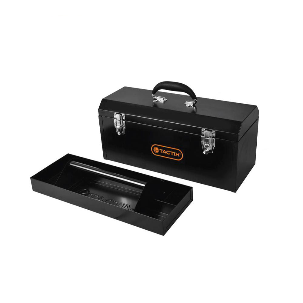 The TACTIX Steel Tool Box offers durability, organization, and convenience for your tools. Its all-steel construction, comfort-grip top handle, heavy-duty latches, full-length piano hinge, and metal tote tray make it a reliable choice for storing and transporting your tools. Keep your tools secure and easily accessible with this robust and versatile toolbox.